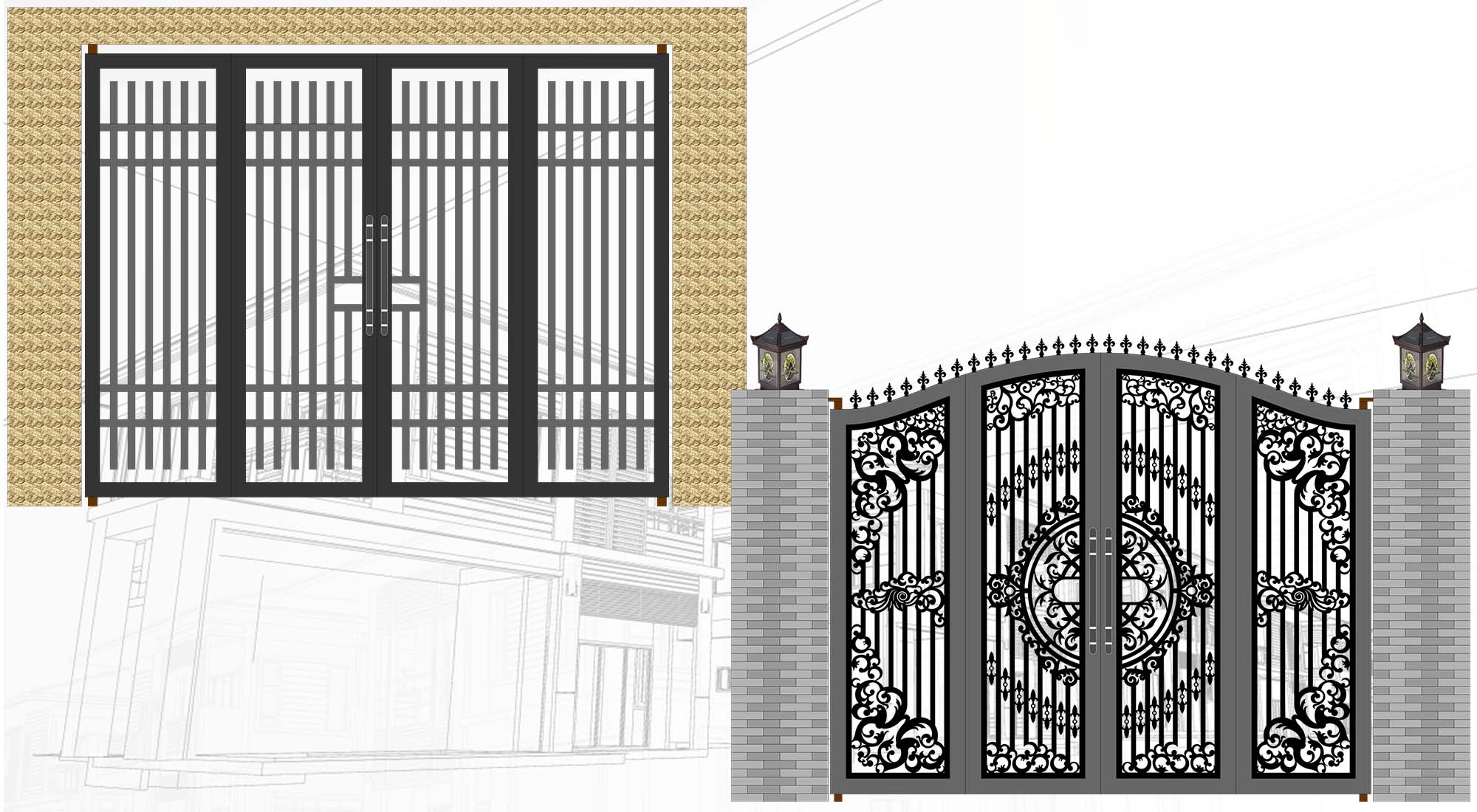 Cổng 4 Cánh – Hoa Góc + Đồng Tiền – Cổ Điển – CO4C-CD-001