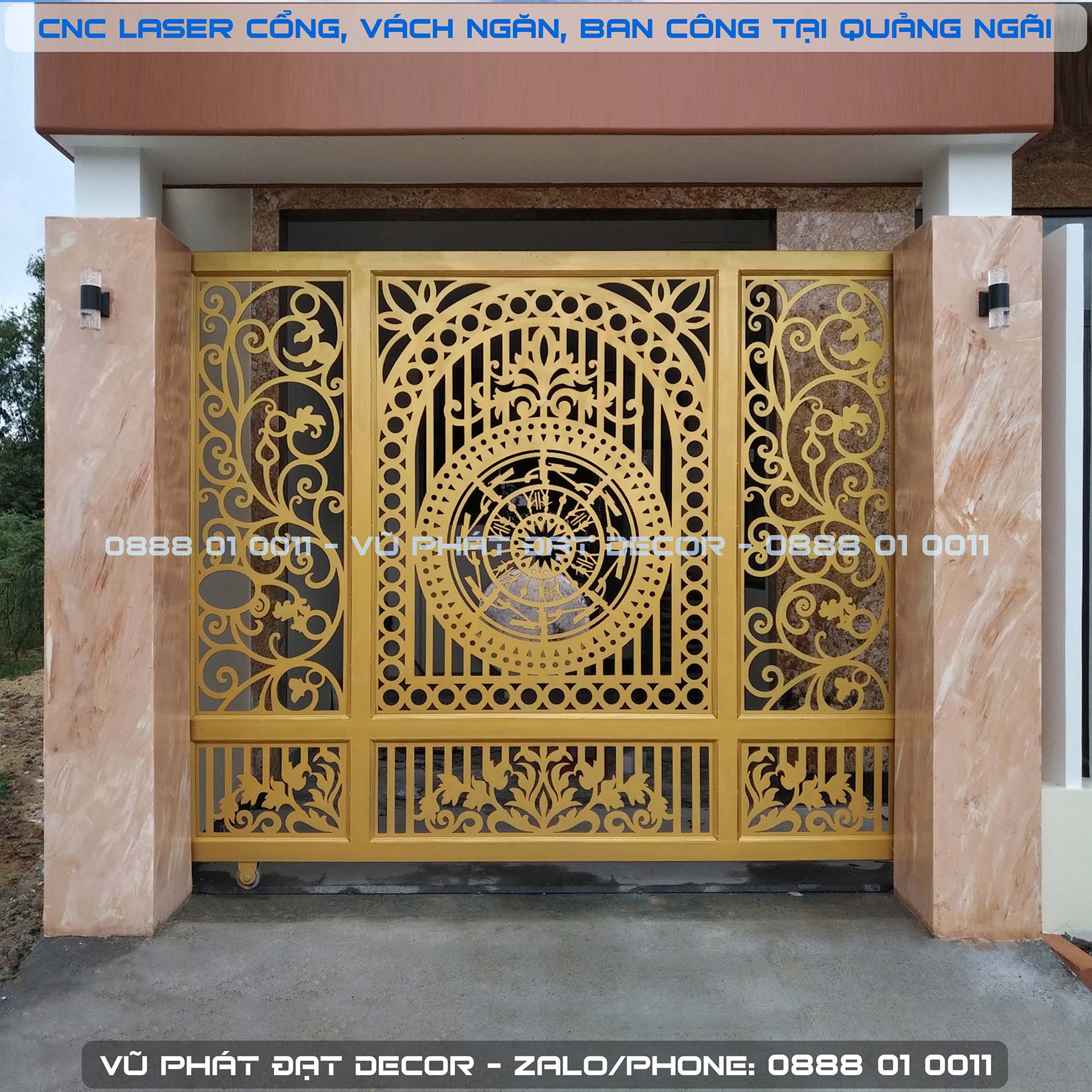 Cổng Trượt Trống Đồng + Hoa Lá Tây – Cổ Điển – COT-CD-001
