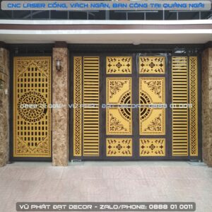 Cổng Trượt Trống Đồng + Hoa Lá Tây – Cổ Điển – COT-CD-001