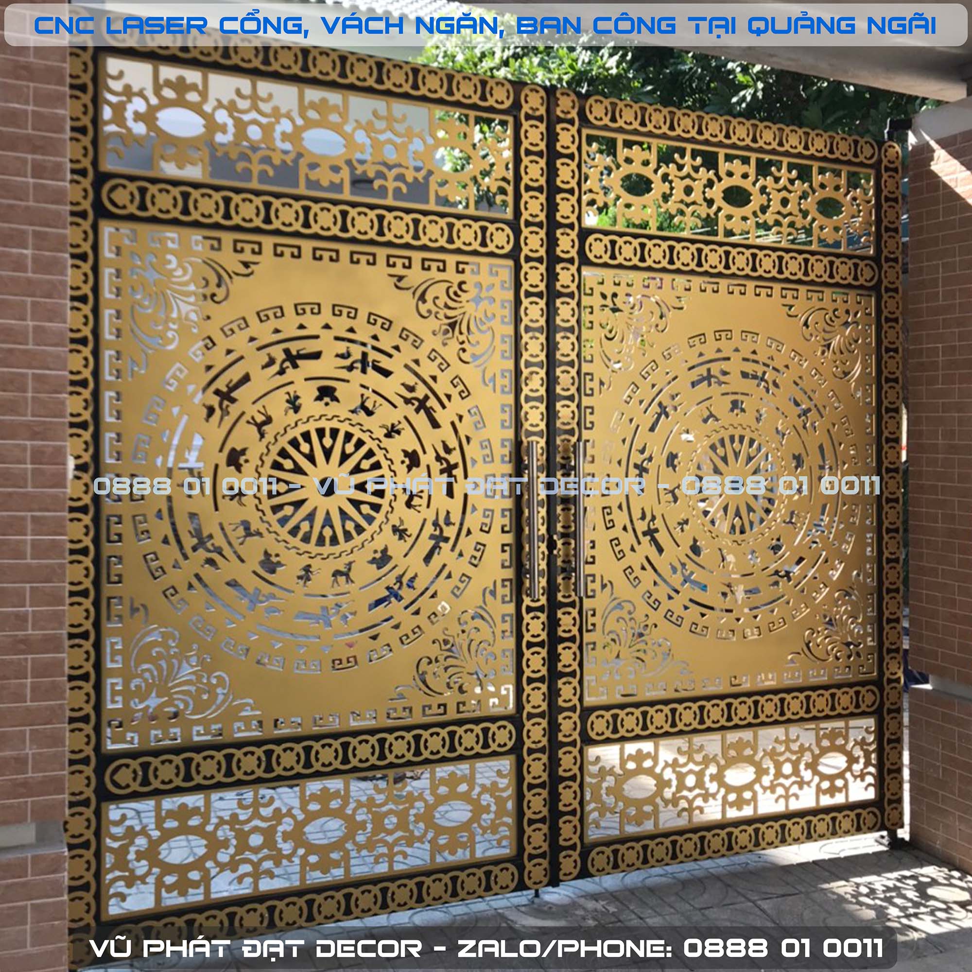 Cổng CNC Laser 2 cánh hoa văn trống đồng cổ điển